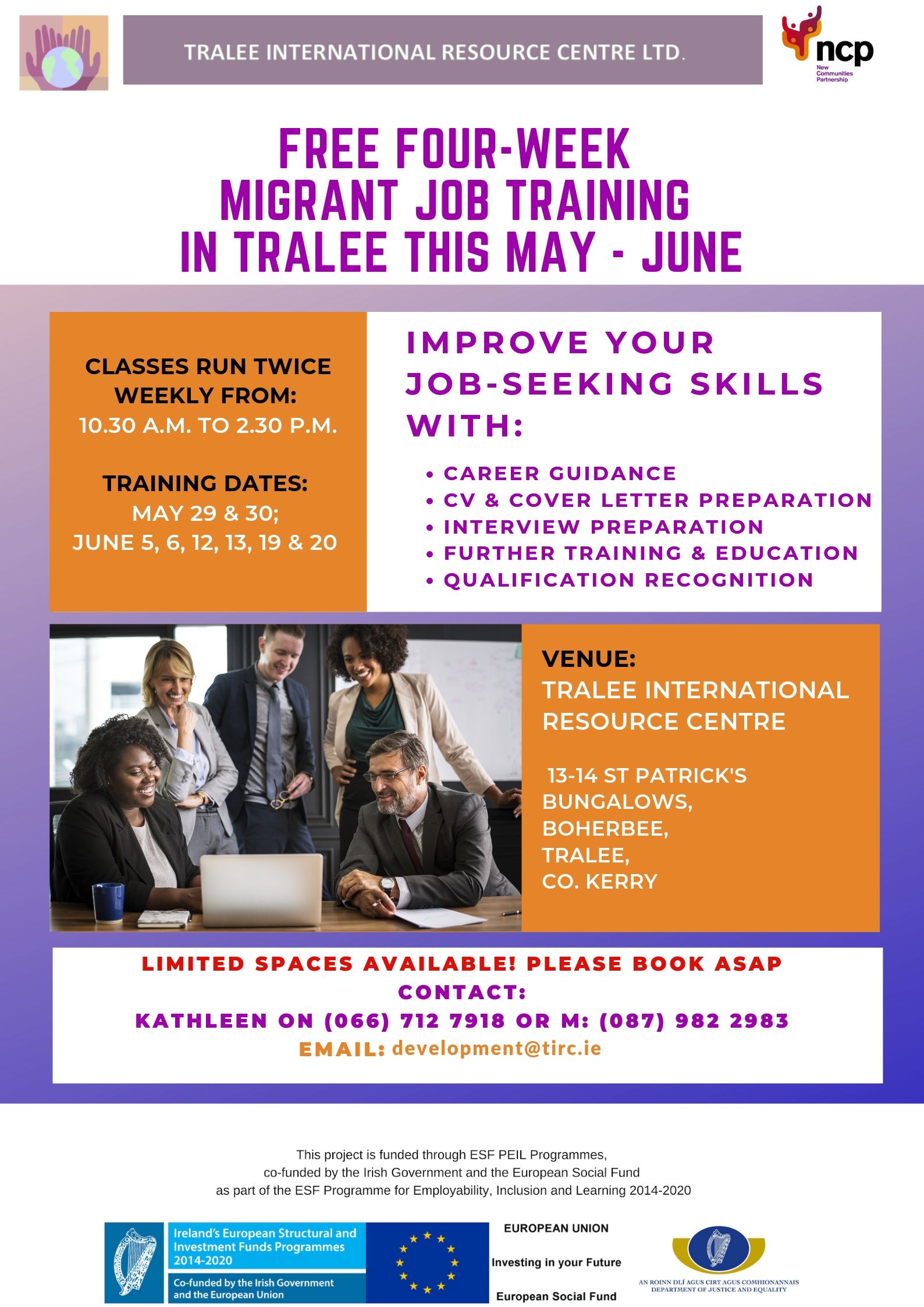 New Communities Partnership's employment training is coming to Tralee, Co. Kerry at the end of this month! (It's completely free to attend, too.)