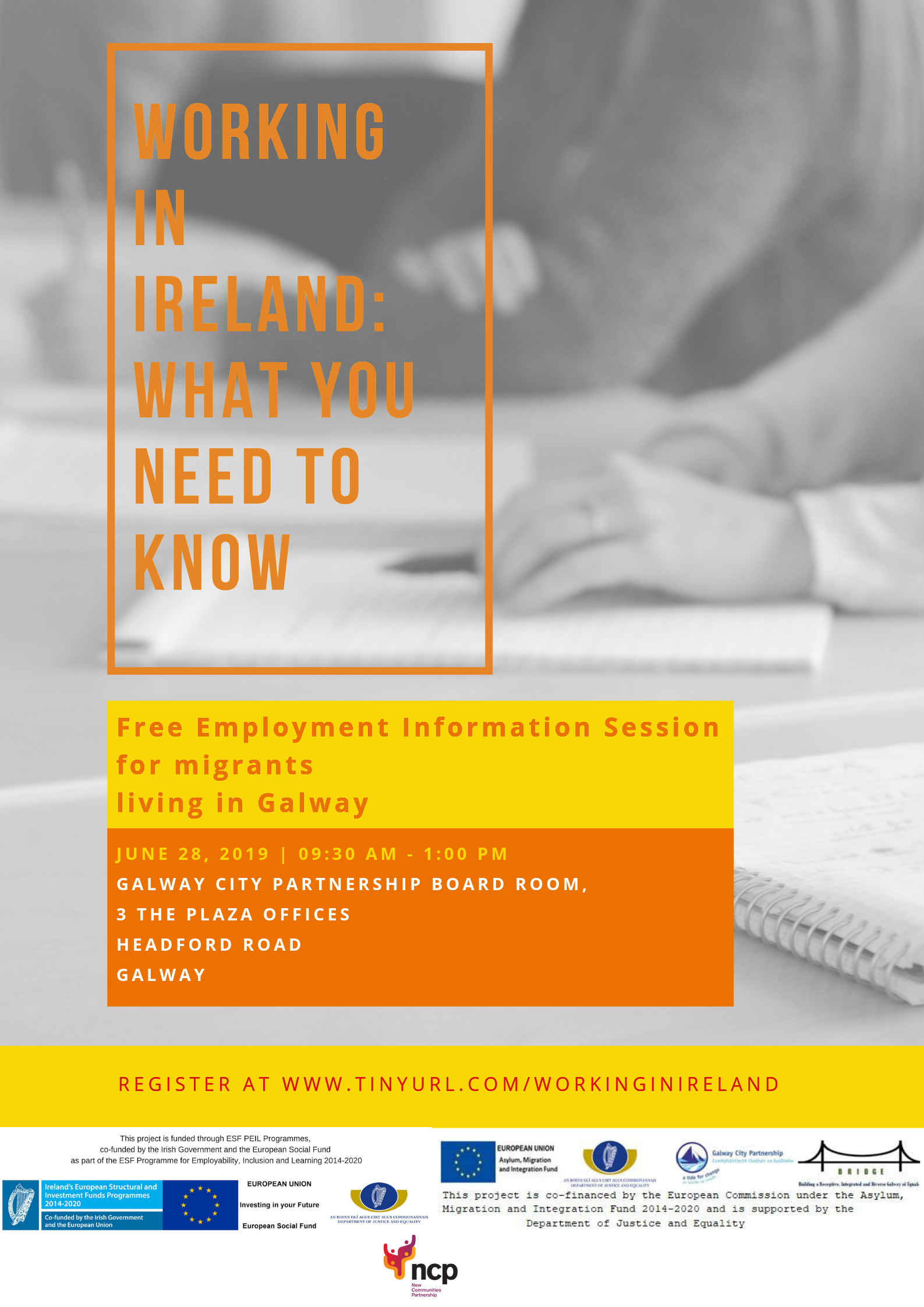 This free information session is being organised through New Communities Partnership (NCP)'s Migrant Access Programme, a service established by NCP in 2017 to support migrants to increase their employment opportunities in Ireland. If you are tweeting about this, please use the hashtag #euinmyregion